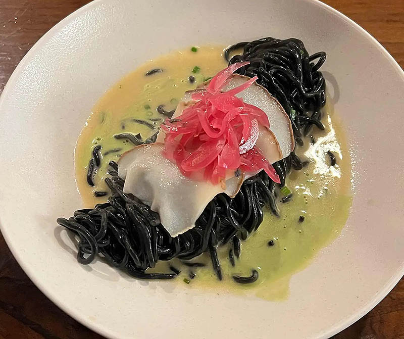 대표 메뉴 ‘Smoked Burrata Cheese’는 토마토 절임 위에 사과나무로 훈연한 부라타 치즈를 올린 뒤 대파 크림과 올리브 오일, 길쭉하게 찢은 스트링 치즈를 곁들여 제공합니다.