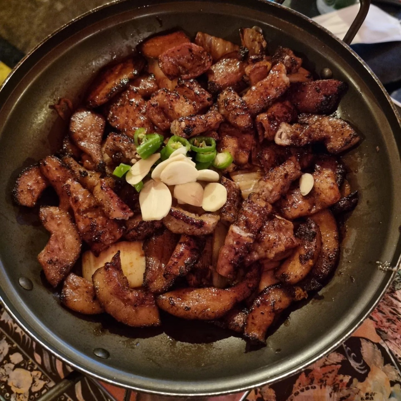 가격: 숯불 통갈비살(국내) 18,000원, 숯불 생토시살 12,000원, 얼큰 순두부 8,000원