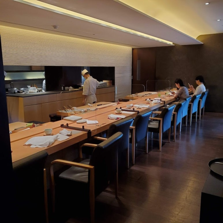 스식코스와 오마카세 코스가 인기가 많습니다. 도쿄의 유명 스시집 큐베 출신의 일본인 수석셰프가 요리를 담당하며, 스시, 조림, 튀김을 따로 주문할 수 있고, 코스요리도 준비되어 있습니다. 원래 지하에 자리잡고 있다가, 2009년 20층으로 위치를 옮기고 메뉴를 강화했습니다.