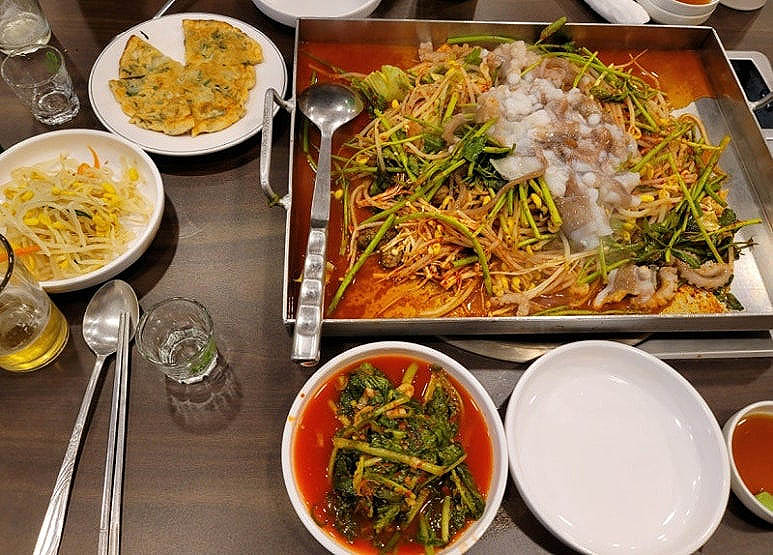 철판에 지글지글 구워먹는 낙지 볶음