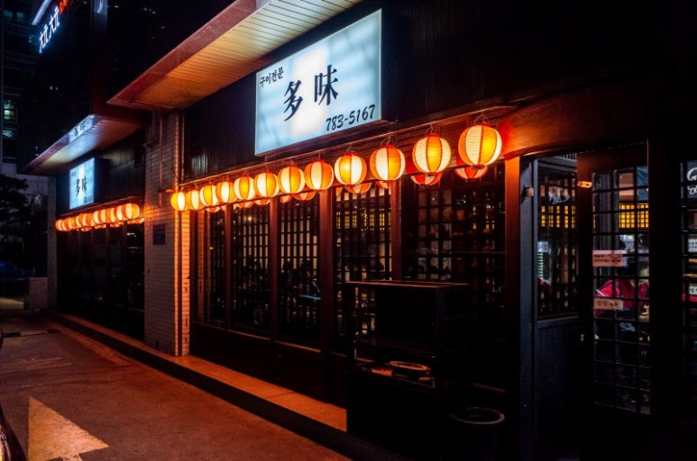 구이 메뉴 중에서는 부드럽고 비린내 없는 '연어 머리 구이'와 소주로 만든 이 집의 시그니처 메뉴 '다미 칵테일'이 인기입니다. 연어 머리 구이는 조리시간이 길기 때문에 예약 주문을 추천하며 조용하게 식사할 수 있는 다다미방도 있으니 참고 바랍니다.