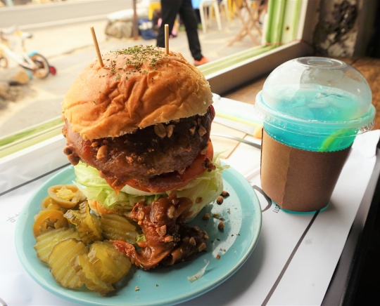 노부부가 살던 집을 개조하여 아기자기하게 만든 예쁜 카페입니다. 바닷가에서 바다바람을 맞으며 차 한 잔의 여유를 느낄 수 있습니다다. 구좌마늘 흑돼지버거, 제주딱새우 버거 등의 수제버거와 핫도그가 인기입니다.