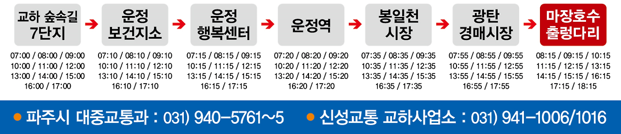 (2) 금촌역출발 : 금촌1번 출구에서 10번, 62번 탑승 → 광탄삼거리 하차