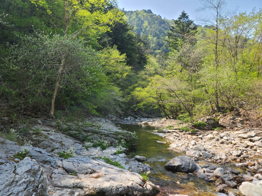 강원도 방태산 기슭에 위치한 아침가리 숲길은 '아침에 잠시 햇빛이 비치는 곳'이라는 이름을 가지고 있습니다. 코스는 험하지만 자연을 온전히 느낄 수 있어 계곡 걷기 여행의 명소로 손꼽힙니다. 숲길은 약 12km에 달합니다.
