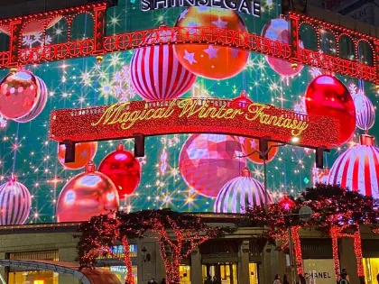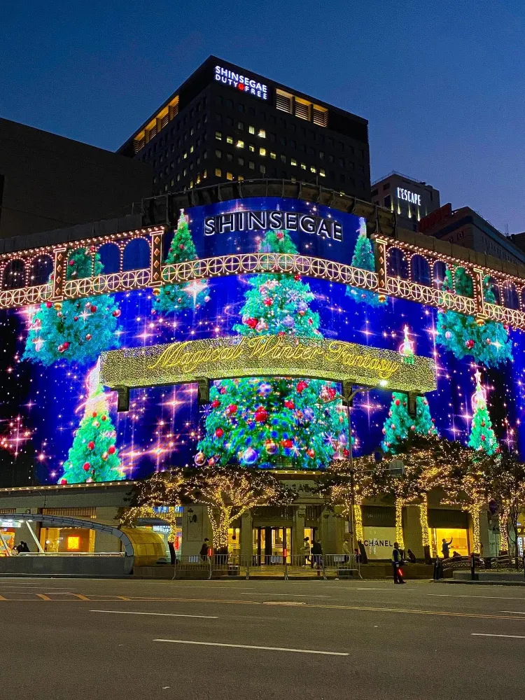 건물 외관 전체를 미디어 사파이어라는 스크린을 통해 'Magical Winter Fantasy'를 주제로 약 3분간 아름다운 영상이 펼쳐집니다. 약 140만개의 LED와 함께 크리스마스 포토존 명소로 각광받고 있는 곳입니다.