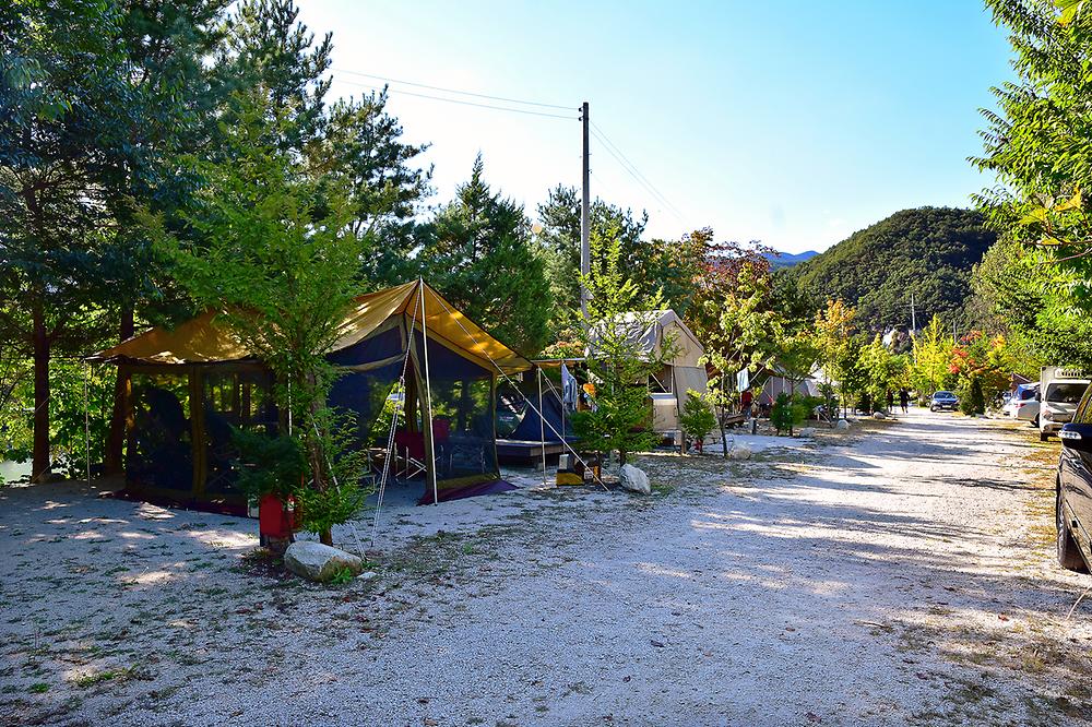 캠핑장에서는 일부 캠핑용품을 대여할 수 있으며, 카라반과 텐트를 이용한 캠핑이 가능합니다. 사이트는 구역별로 나누어져 있으며, 계곡 가까운 사이트, 연못 가까운 사이트, 가족형 사이트 등이 있어 홈페이지를 통해 참고 후 선착순 예약이 가능합니다.