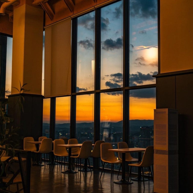 맛있는 식사를 마친 후, 자극된 혀를 달콤한 디저트로 달래줄 차례입니다. 이곳은 야경이 정말 아름다운 카페로, 무려 49층에 위치한 초고층 카페입니다. 이 높은 위치 덕분에 환상적인 뷰를 감상할 수 있습니다.