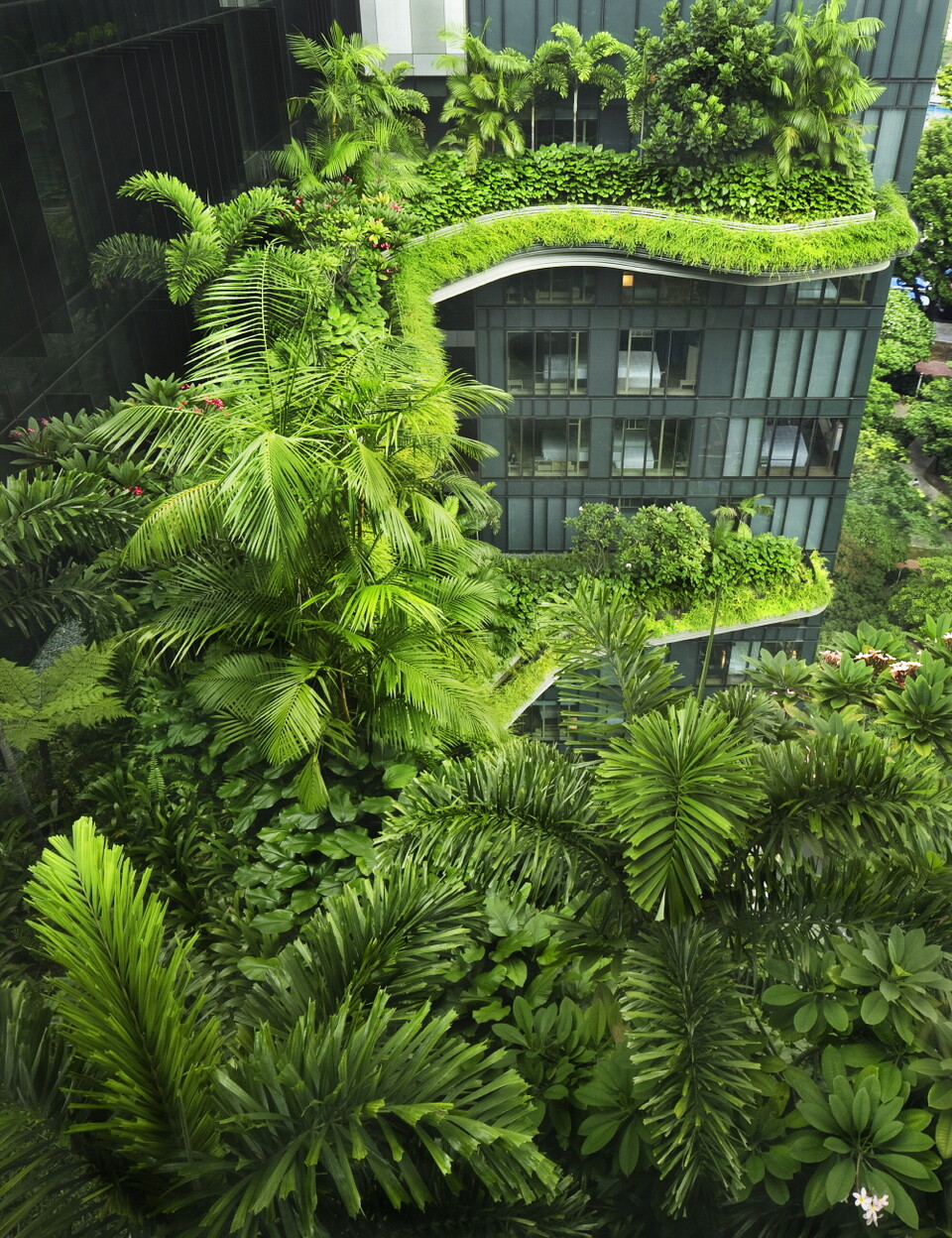 파크 커넥터 네트워크(PCN)가 각각의 공원을 하나로 확대하는 개념이라면, ‘스카이라이즈 그리너리(Skyrise Greenery)’는 상업지대의 건축물을 녹화해 도심 공원을 추가 조성하기 위한 사업이다. 현재 싱가포르에서 건축물 녹화사업에 참여할 경우 국립공원위원회가 그 비용의 50%까지 지원한단다. 2009년부터 지금까지 이 사업을 통해 약 110개가 넘는 건축물이 녹화되었고, 덕분에 회색빛의 건물은 살아 숨 쉬는 것에 적응하기 시작했다.