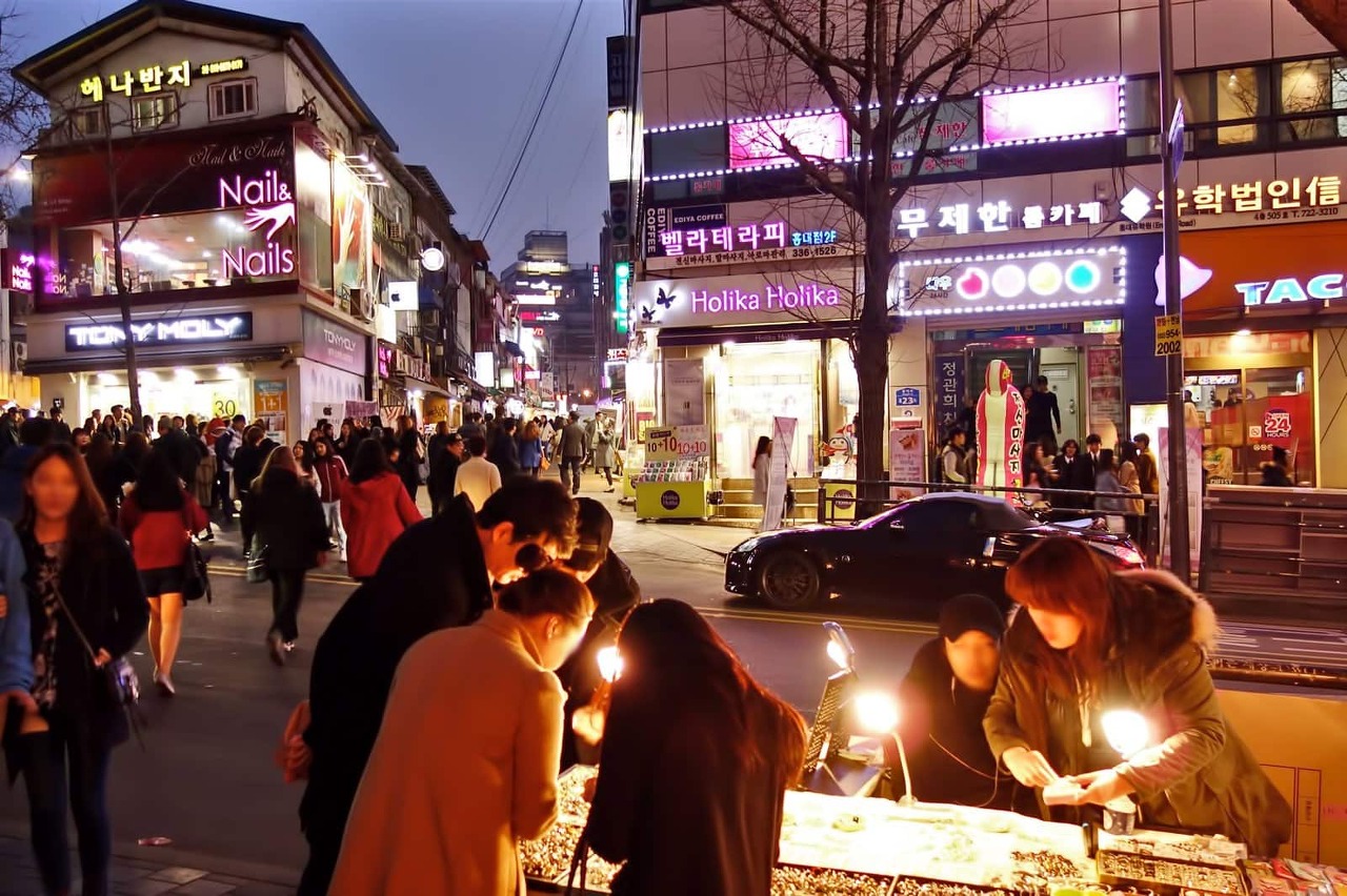 미술대학으로 유명한 홍대 거리에는 특유의 개성 있고 독특한 액세서리와 의류, 소품 등을 판매하는 상점이 많아요. 취향에 맞게 제작이 가능한 공방도 있어 다른 어디에서도 보기 힘든 나만의 아이템을 원하는 사람들은 이곳 홍대 거리를 찾죠. 홍대 거리에는 감성 가득한 카페나 공연장도 많아 주말 외출을 즐기기에 좋아요.
