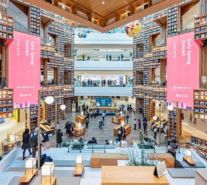 많은 인파가 몰리는 별마당 도서관에서 한 걸음 떨어져 쉬어 갈 수 있는 곳은 바로 바이닐이에요. 별마당 뷰를 바라보며 LP 청음을 할 수 있는 공간이기 때문이죠. 감각적인 분위기와 함께 음악을 들으며 재충전할 수 있는 곳이에요. 앞으로 LP 청음회와 아티스트와 신규 음원 발매 토크 콘서트도 진행할 예정이라고 하니 기대됩니다.