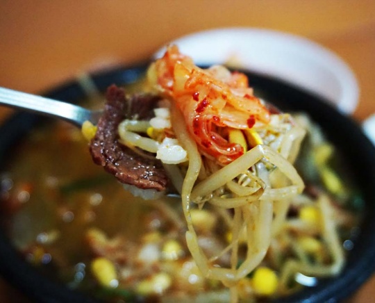 잘 익은 깍두기와 김치를 곁들여 먹으면 좋습니다. 시원한 국물맛이 일품인 소고기 국밥은 해장용으로도 좋아 아침시간에 찾는 이들이 많습니다. 넉넉한 소고기와 콩나물, 대파 고명까지 완벽한 한 그릇입니다.