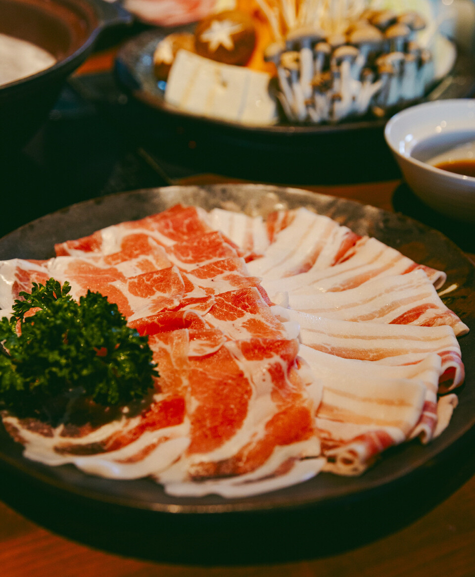 한국인이 좋아하는 뱃살 부위는 고소한 맛이 좋고, 앞다리 살은 담백하다. 갖가지 채소와 고기를 다 먹고 마지막으로 먹는 우동과 죽도 빠트릴 수 없다. 가고시마 시내 곳곳에서 만날 수 있고, 근교 여행지인 이부스키에서는 역 근처에 있는 초주안이 추천 식당이다.
