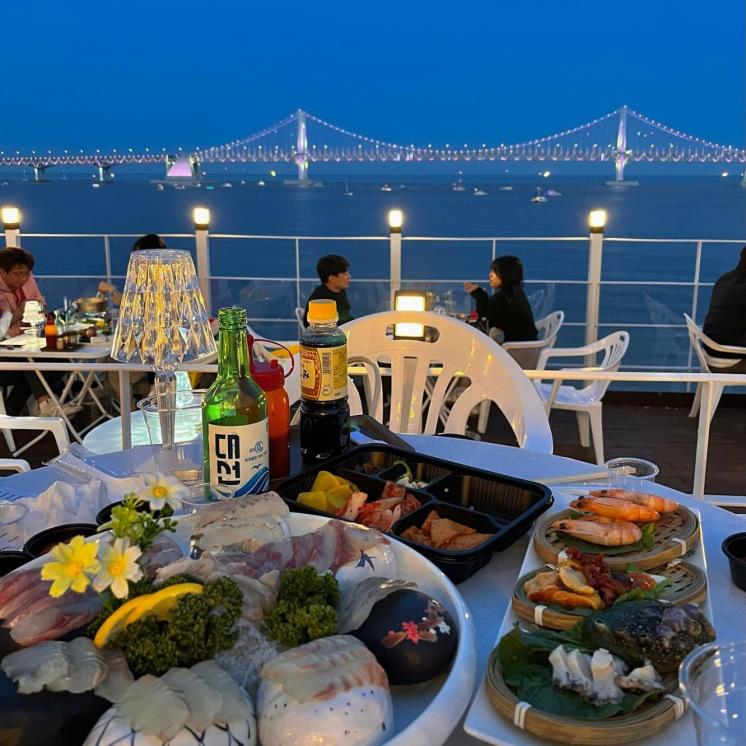 광안리 해변 뷰 루프탑 포장마차 ‘광연이 포차’. 낮에는 카페, 저녁엔 포차로 운영하는 곳으로 모든 시간대 다양하게 즐길 수 있다. 모든 자리 바다 전면이 펼쳐지는 오션뷰를 품었으며 주말에 방문한다면 드론쇼와 불꽃축제까지 감상하며 술 한잔할 수 있어 인기가 많다. 메뉴는 다양한 해산물세트가 있으며 바다를 보면서 입에 넣는 순간 지상낙원이 펼쳐진다. 또한 배에 자리가 남았다면 인기 메뉴 해물폭탄라면까지 주문해 풀코스로 먹어보자.
