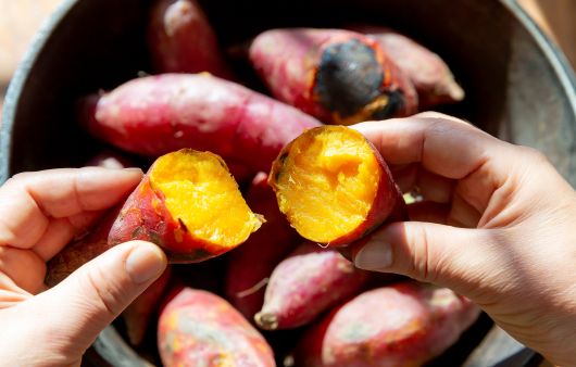 고구마는 식이섬유가 풍부하여 장 운동을 도와 소화를 촉진하고 변비 예방에 도움이 됩니다.